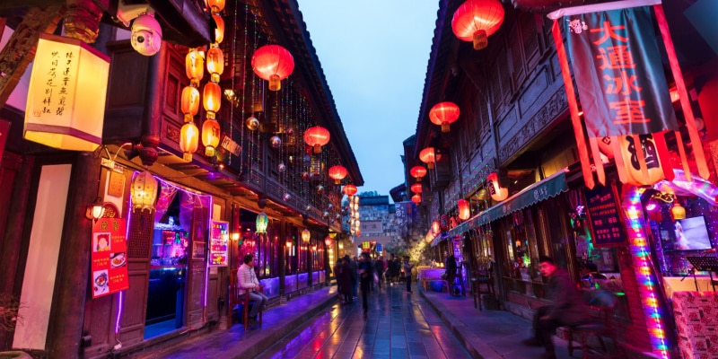 Par ailleurs, Jinli Street est un lieu qui permet de découvrir la culture et la gastronomie du Sichuan, réputées pour leur richesse et leur diversité. C’est aussi un lieu qui offre de l’amusement, avec des spectacles variés et traditionnels qui montrent le talent et l’originalité des artistes locaux. Vous pourrez y voir des marionnettes qui racontent des histoires, des opéras qui content des légendes, des magiciens qui font des tours, des jongleurs qui lancent des objets, et bien d’autres. Enfin, Jinli Street est un lieu qui dégage une atmosphère festive et romantique, surtout la nuit, quand les lanternes s’allument et donnent une touche de magie au marché. Notre avis : c’est l’un des plus beaux marchés du monde !